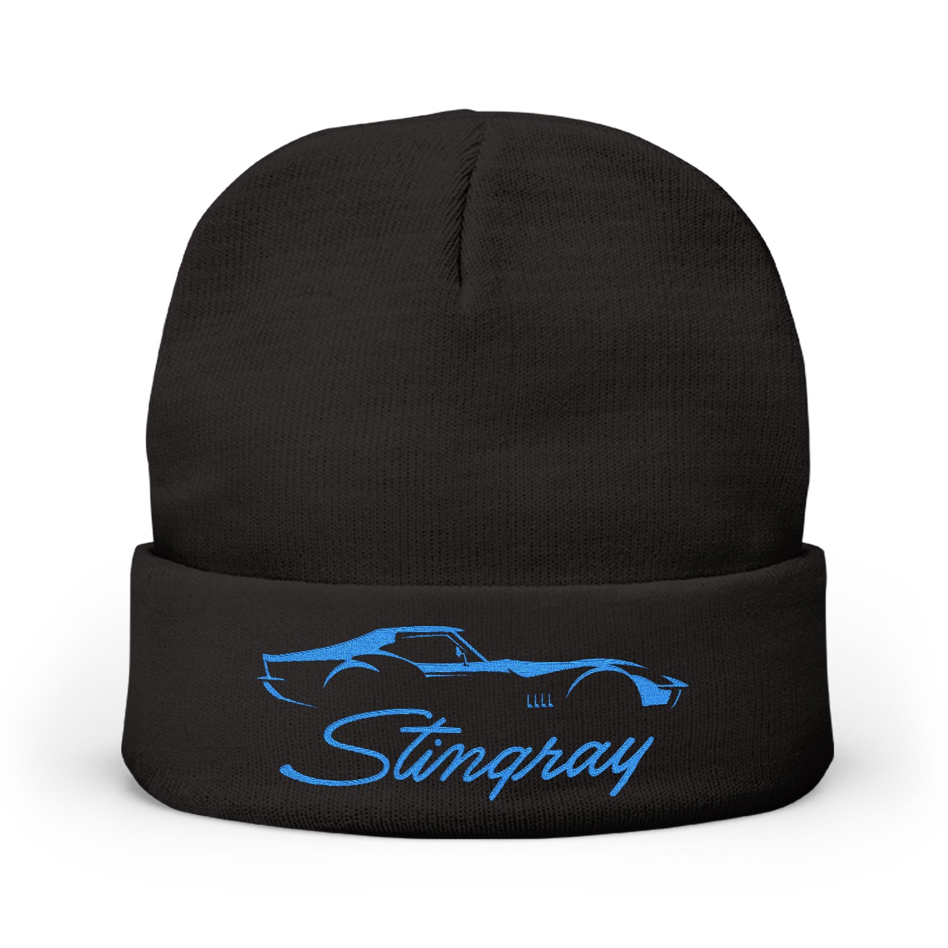 Corvette Blue Stingray C3 Embroidery Winter Beanie, Knitted Hat, Cozy Cap, Outdoor Accessory, Unisex, Gift for Him, Gift for Her