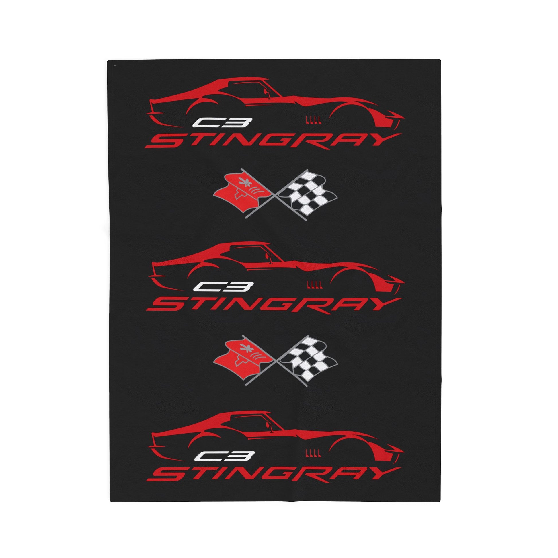 Corvette C3 Stingray Black Blanket, Stingray Corvette Gifts, Soft Blankets, Corvette Logo, Velveteen Blanket, Car Guy Gifts, Car Girl Gifts