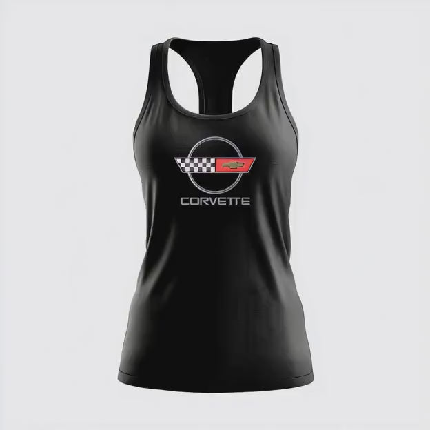 Corvette C4 Women's Racerback Tank Top, Gifts for Car Girls, Summer Top, Fitness Tank, Raceday Gear, Black Corvette Shirt