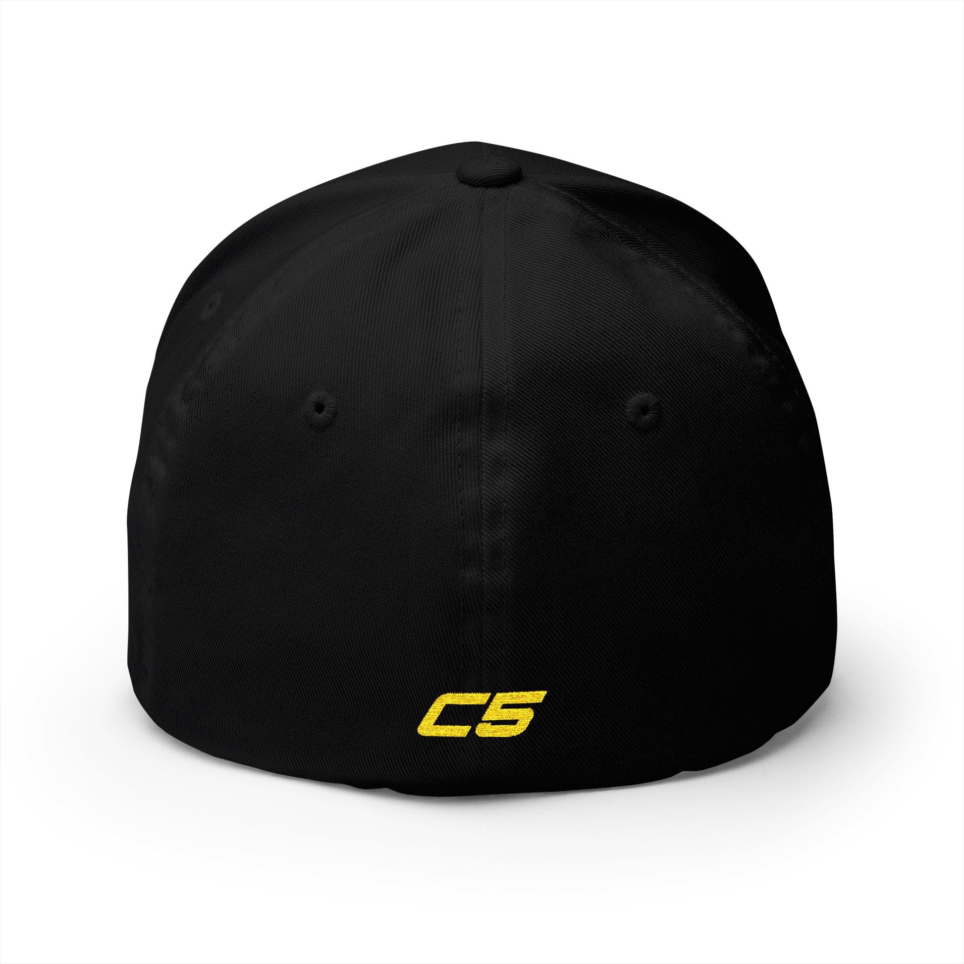 Corvette C5 Yellow Logo Baseball Cap, Flexfit Hat, Stretchy Band, Black Hat, Corvette Gear, Embroidery