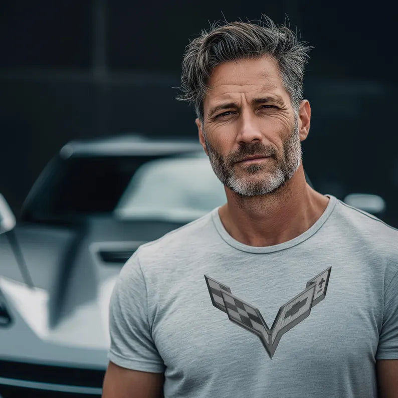 Rev up your wardrobe with this Corvette C7 metallic look, dimensional emblem T-Shirt! Made from high-quality Bella+Canvas fabric, this ultra-soft, short sleeve graphic tee offers comfort and style.