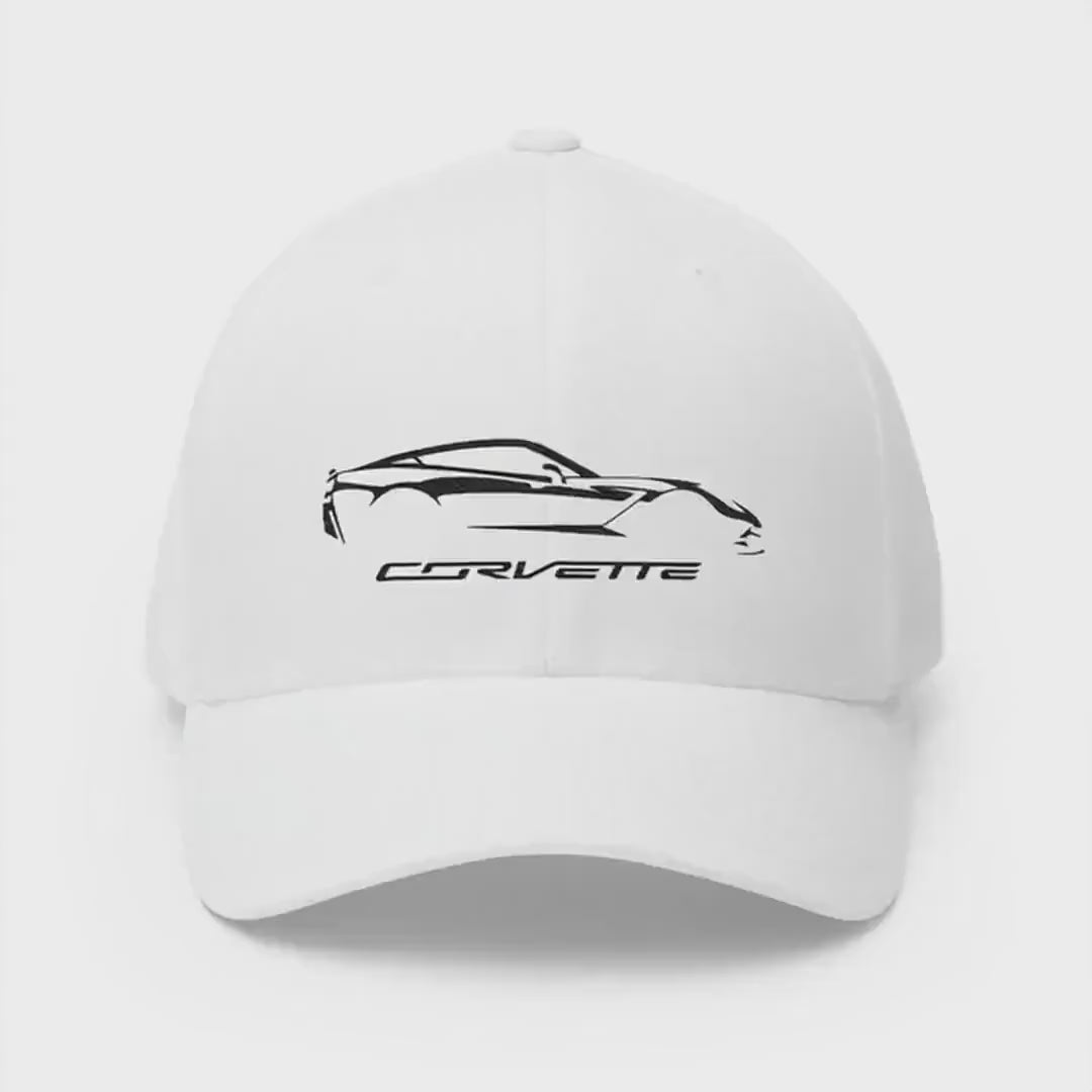 Corvette C7 Custom Silhouette Baseball Cap, Flexfit Hat, Stretchy Band, Black Hat, Corvette Gear, Embroidery