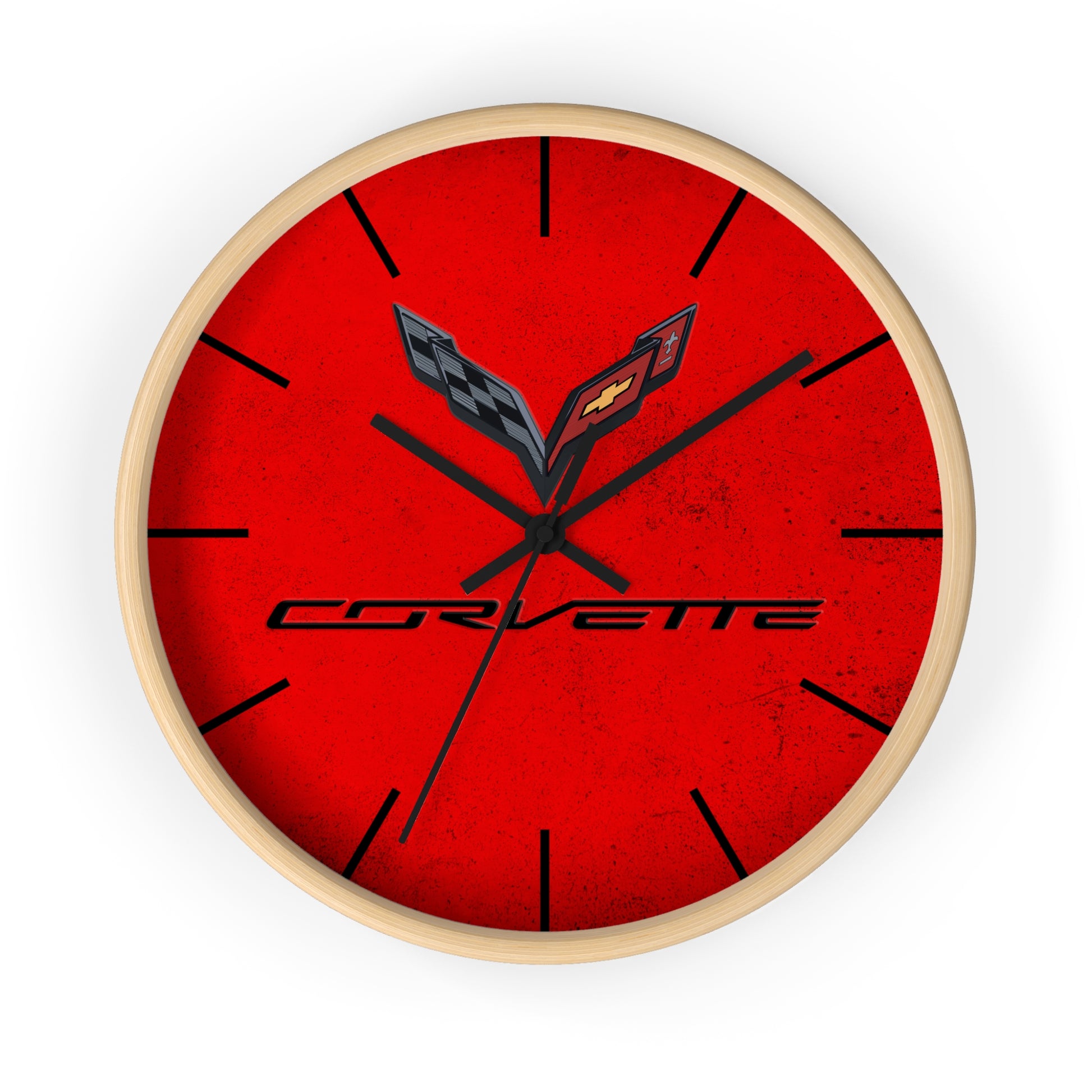 Corvette C7 Wall Clock, Racing Home Decor, Gift for Him, Man Cave Clock, Corvette Merchandise, Mancave Gift, Clocks