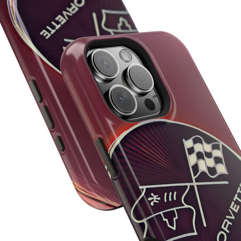 Corvette Emblem Magnetic Tough Case, iPhone Case, Impact Resistant, MagSafe, Rubber Liner, Matte or Glossy, Cell Phone Case