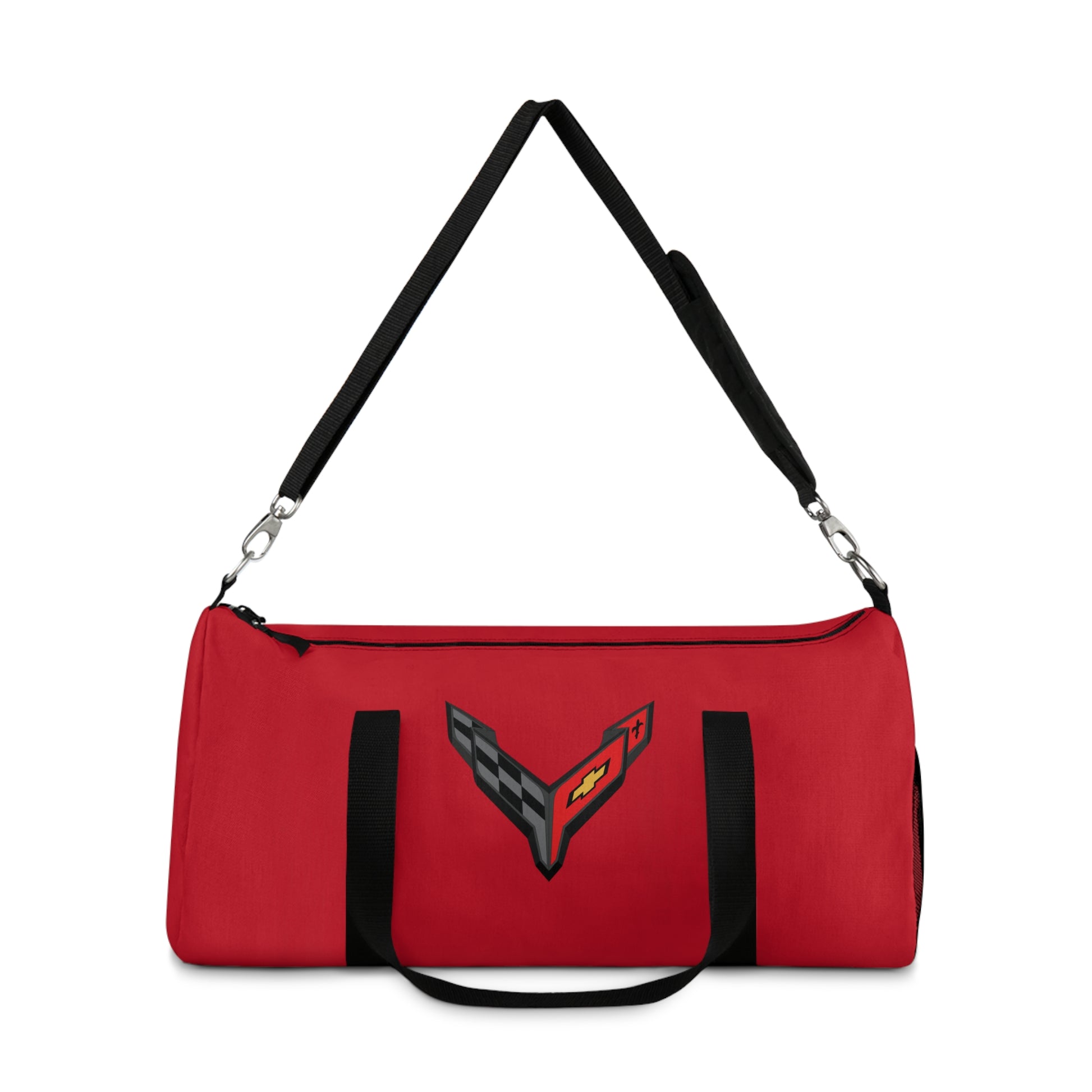 Red Corvette Duffel Bag, C8 Logo, Gym Bag, Travel Bag, Gifts for Car Guys, Gifts for Car Girls, Corvette Merch, Overnight Duffel