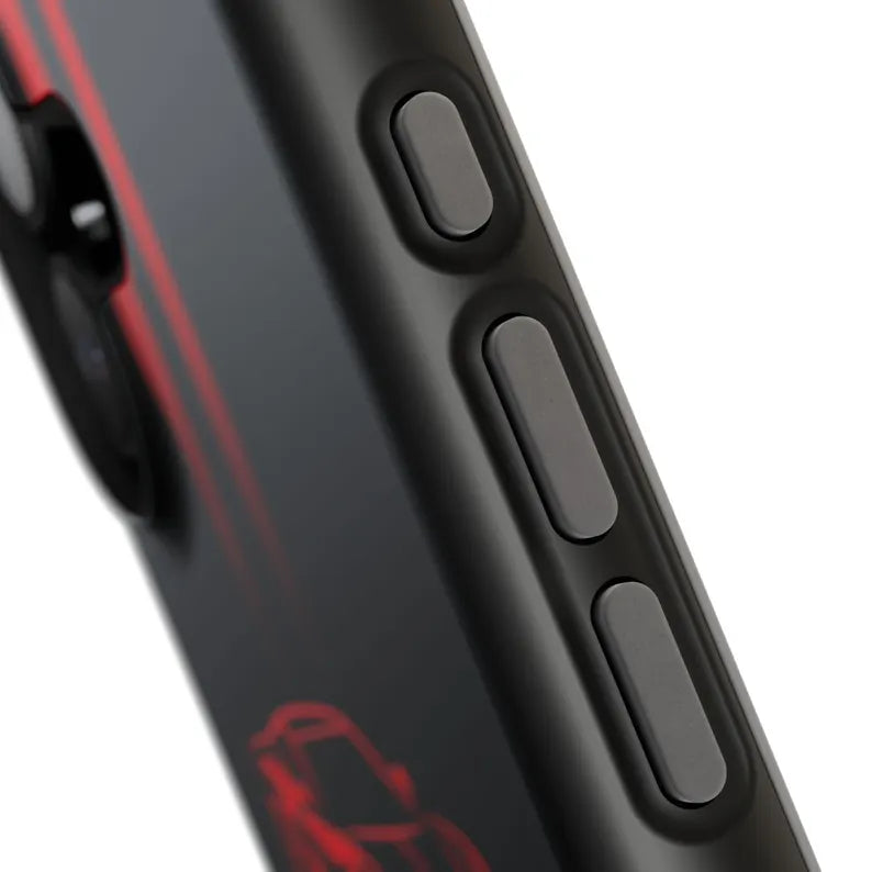 🏁 Make a high-speed impression with this Corvette iPhone and Samsung Phone Case. Featuring a bold red C8 silhouette and vibrant twin racing stripes, this case combines show-stopping looks with serious protection. Comes with a removable rubber liner, supports wireless charging (magnet not included), and is available in polycarbonate matte or glossy finish.