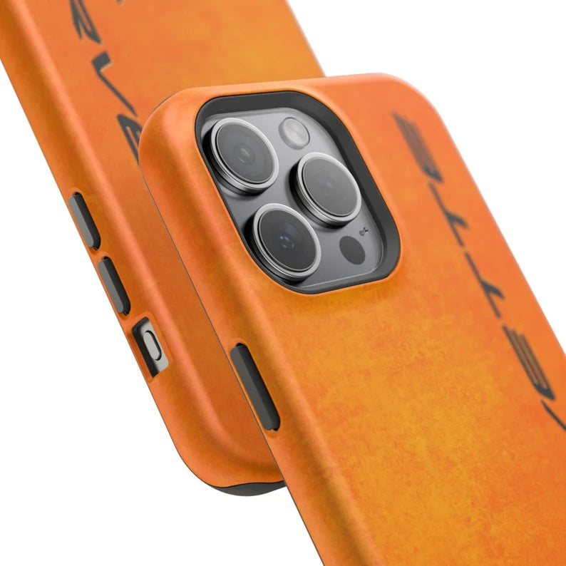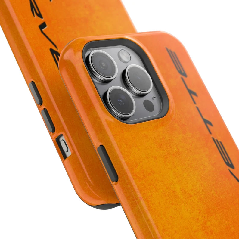 🏁 Introducing the ultimate accessory for Corvette enthusiasts – our sleek Corvette iPhone and Samsung Phone Case! Crafted with durability in mind, this case features a removable inner rubber liner that provides unmatched impact resistance, ensuring your phone stays protected against bumps and drops. This case also supports wireless charging (magnet not included) and comes in a matte or glossy finish. The case is orange with black accents.