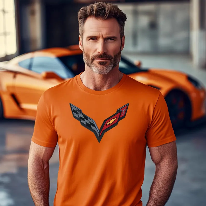 Featuring a sleek black C7 Corvette logo, this shirt is perfect for Corvette enthusiasts. Available in 6 vibrant colors, this tee is a must-have for any Vette lover. Whether you're at a car show, cruising the streets, or relaxing at home, this shirt lets you show off your passion with style. This tee is perfect for any occasion or as a gift.
