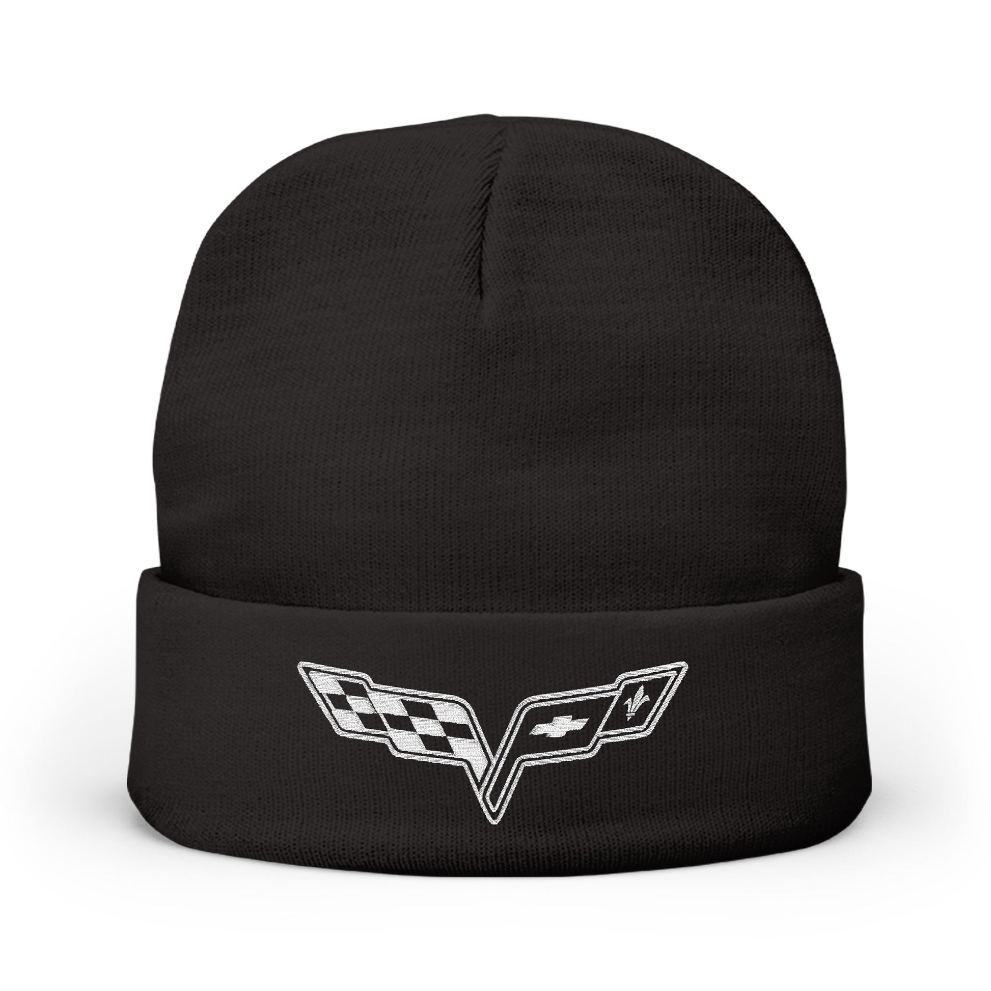 Corvette White C6 Embroidery Winter Beanie, Knitted Hat, Cozy Cap, Outdoor Accessory, Unisex, Gift for Him, Gift for Her